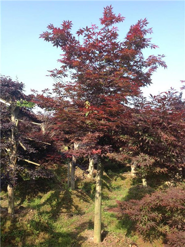 紅楓是一種非常美麗的觀葉樹種,其葉形優(yōu)美,紅色鮮艷持久,枝序整齊,層次分明,錯落有致,樹姿美觀。廣泛用于園林綠地及庭院做觀賞樹,以孤植、散植為主,宜布置在草坪中央,高大建筑物前后、角隅等地,紅葉綠樹相映成趣。它也可盆栽做成露根、倚石、懸崖、枯干等形狀,風(fēng)雅別致。