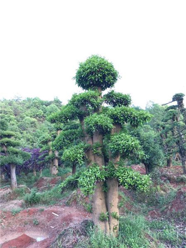 杜英造型產(chǎn)品主要類型有:古樁造型、雙桿造型、單桿造型、盆景造型、柱形、球形等。